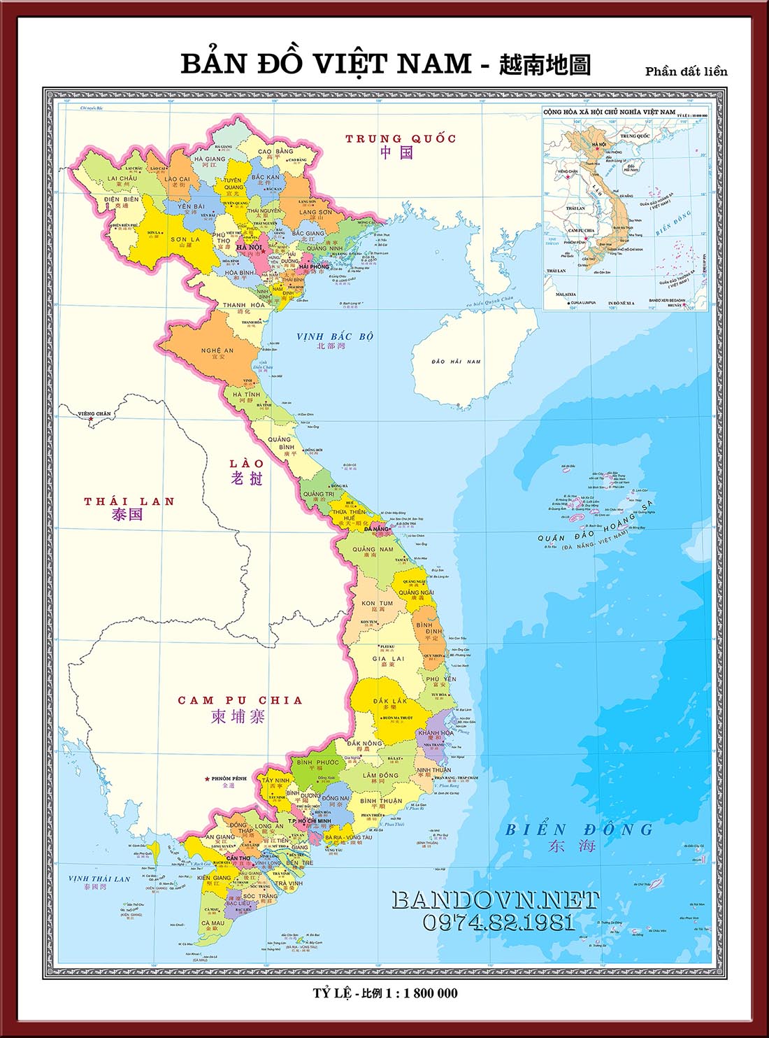 bản đồ việt nam tiếng trung đẹp, chất lượng